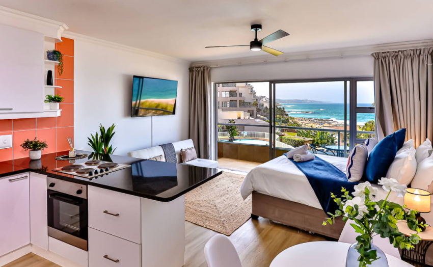 This luxury beachfront bachelor apartment offers the perfect seaside escape, combining comfort, style, and unbeatable views.
