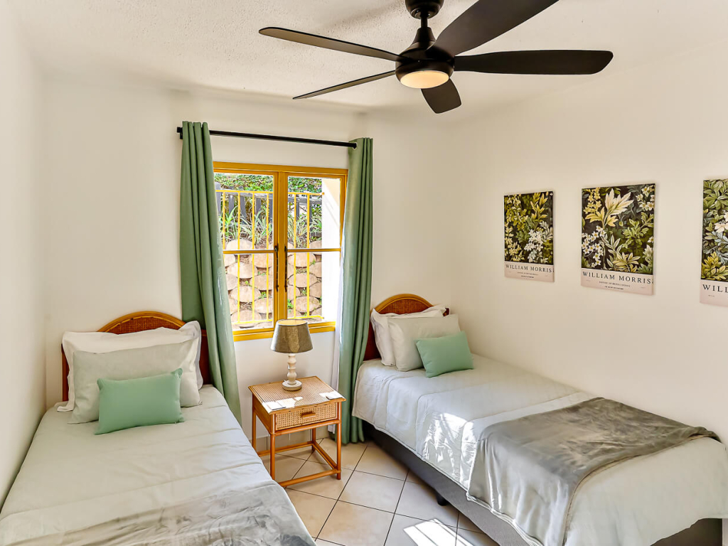 Guests also have access to the complex’s sparkling communal swimming pool – perfect for lazy afternoons in the sun.