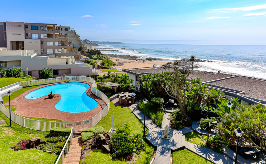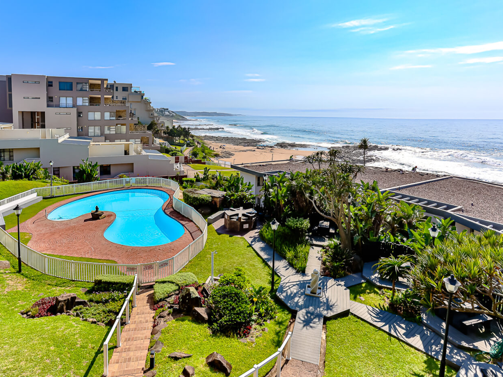 This neat and modern 2nd floor bachelor unit is situated in a sought-after complex in Ballito and has amazing breaker sea-views, overlooking the swimming pool and well-maintained gardens. The complex is only 20 meters from a swimming beach that has shark nets and lifeguards on duty and is situated on the 3km long promenade that is safe for scenic strolls.