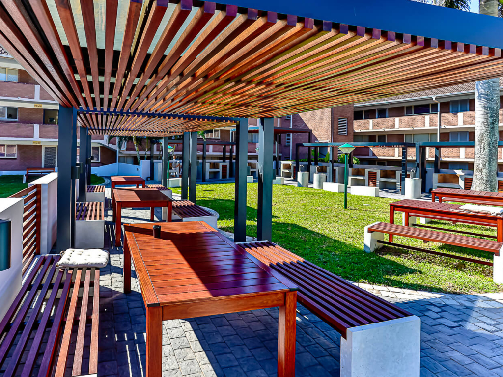 Although there’s no braai on the patio, there’s a lovely braai area situated at the swimming pool. There is secure undercover parking for one vehicle and extra open parking for guests. The gate is accessible by remote control only.