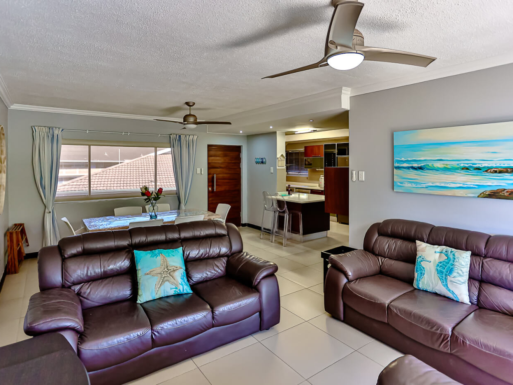 This luxurious, top floor two bedroom apartment is situated right on the main beach of Ballito and is within walking distance to shops, restaurants, and other convenience stores. It is at the northern end of a 3 km promenade, which is perfect for morning or afternoon strolls.
