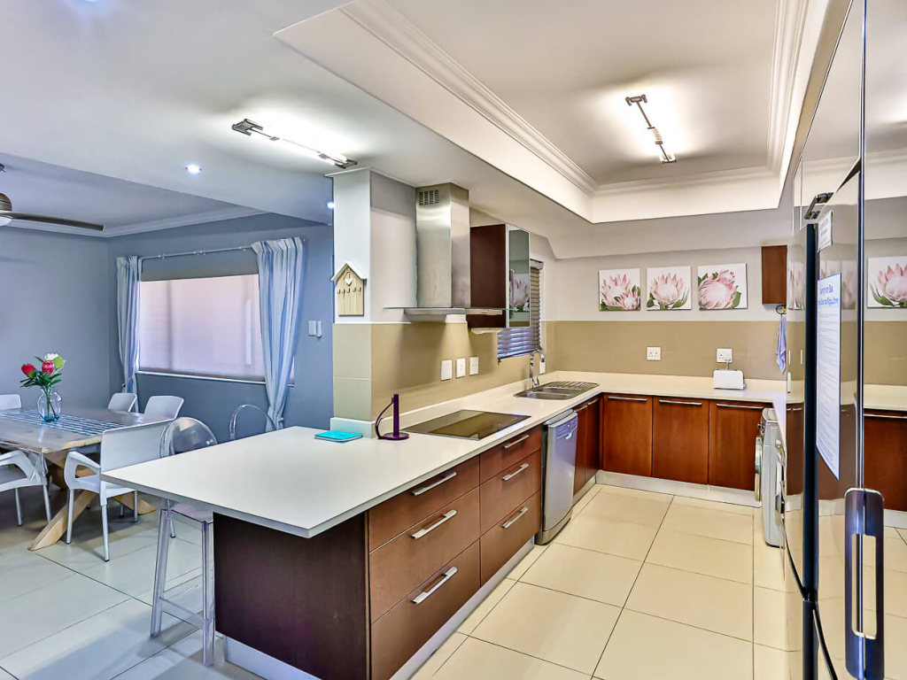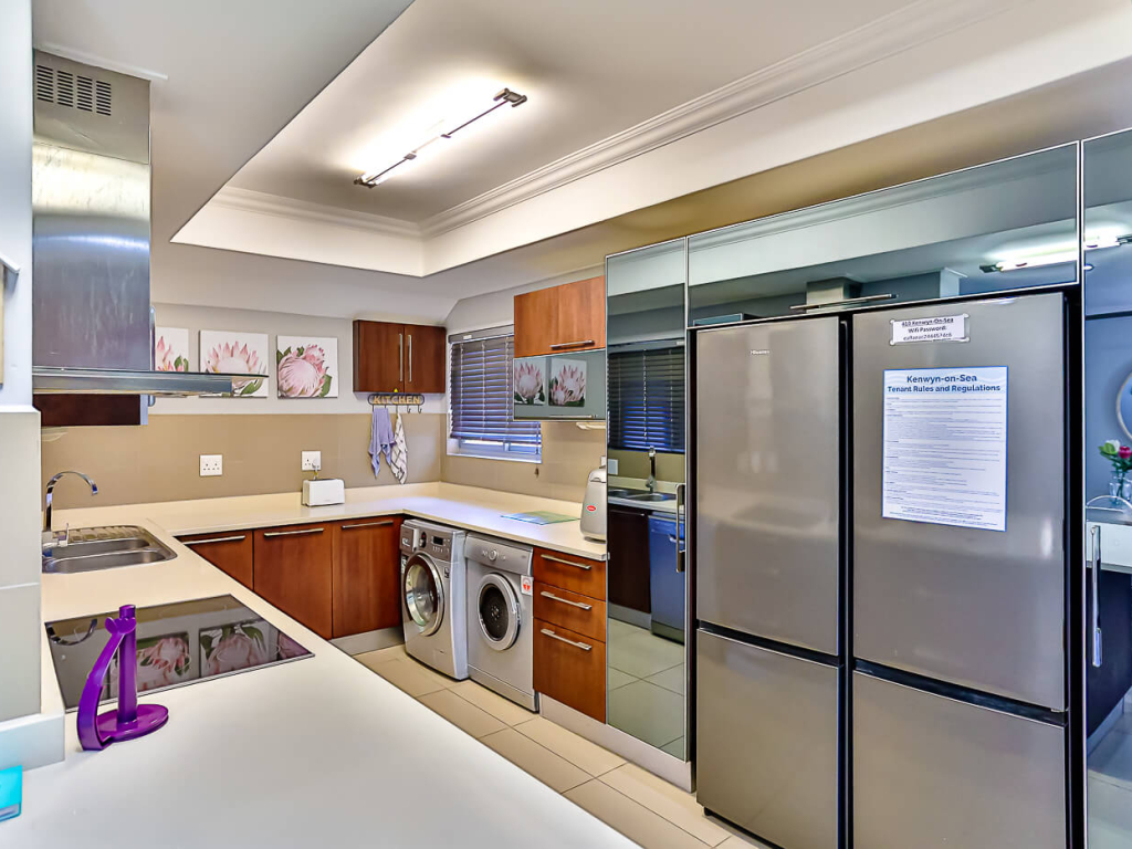 The fully equipped kitchen has a stove, double door fridge/freezer, dishwasher, washing machine, tumble dryer and microwave oven. The tastefully furnished lounge has TV with HP DSTV, and leads out onto a balcony with a gorgeous side sea views. The unit has Wi-Fi as well.